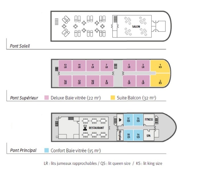 Toutes les cabines spacieuses sont équipées d’une climatisation à réglage individuel, de Salle de douche avec WC, d’espaces de rangement, d’un coffre-fort électronique, de linge de maison.