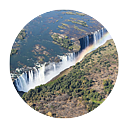 Le Zambèze rencontre ensuite l'un des lieux le plus spectaculaire du continent africain : les Chutes Victoria , ligne de partage entre la Zambie et le Zimbabwe et plus grande cataracte du monde avec ses 1 700 mètres de large et ses 108 mètres de haut ! "Mosi-oa-Tunya" ou la "fumée qui gronde", fut rebaptisée Victoria en 1855 par l’explorateur Livingstone en l’honneur de la reine du Royaume-Uni. C'est là un incontournable pour tout voyageur se rendant en Afrique australe !