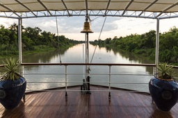Pour ne jamais tomber dans le tourisme de masse et rester fidèle à l’atmosphère conviviale et intimiste chère à Fleuves du Monde, c’est en réalité le nombre de cabines qui a été réduit pour pouvoir offrir de luxueux espaces communs aux passagers. Le pont inférieur accueille ainsi depuis 2012 une belle bibliothèque et un spa pour vous détendre, mais aussi une boutique de produits issus du commerce équitable et une galerie exposant les œuvres d’artistes locaux.